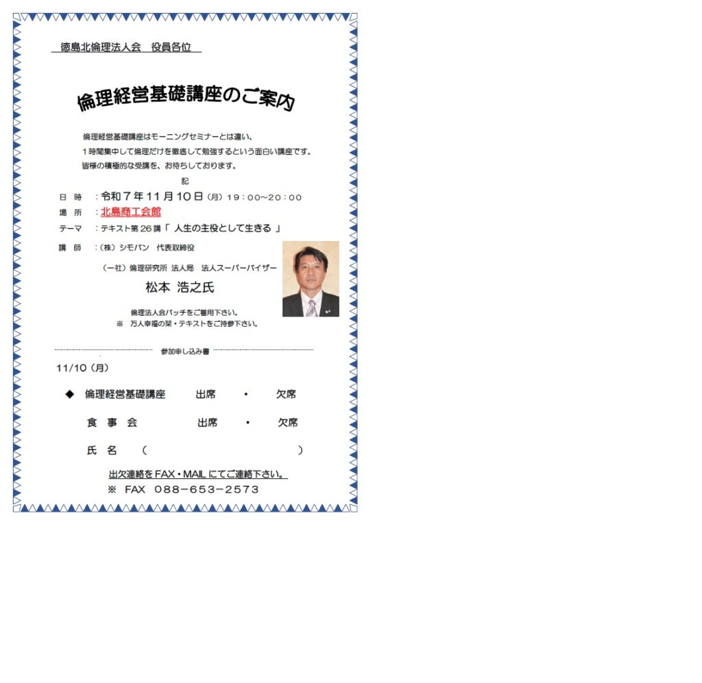 11/10倫理経営基礎講座<徳島北倫理法人会>