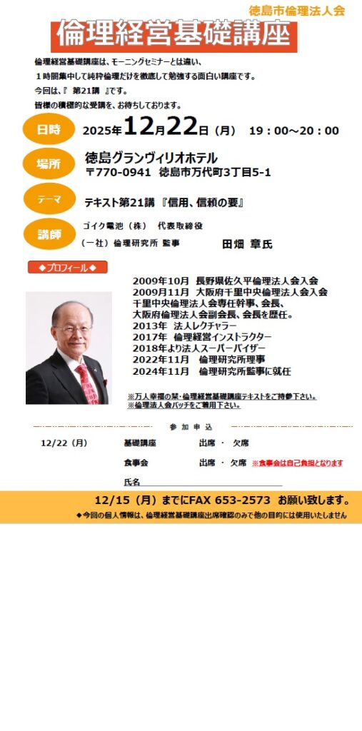 12/22倫理経営基礎講座<徳島市倫理法人会>