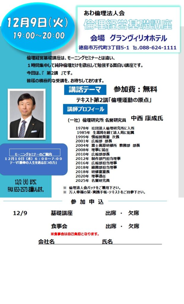 12/9倫理経営基礎講座<あわ倫理法人会>