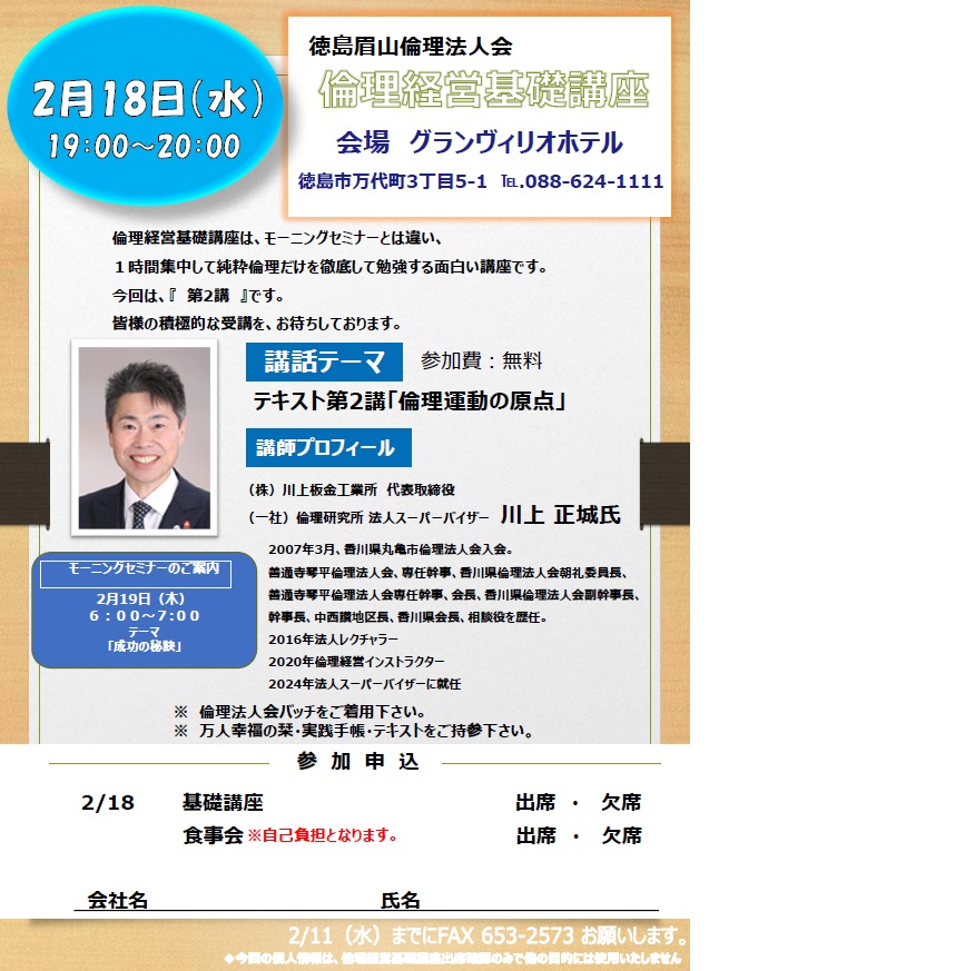 2/18倫理経営基礎講座<徳島眉山倫理法人会>