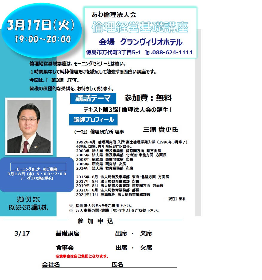 3/17倫理経営基礎講座<あわ倫理法人会>