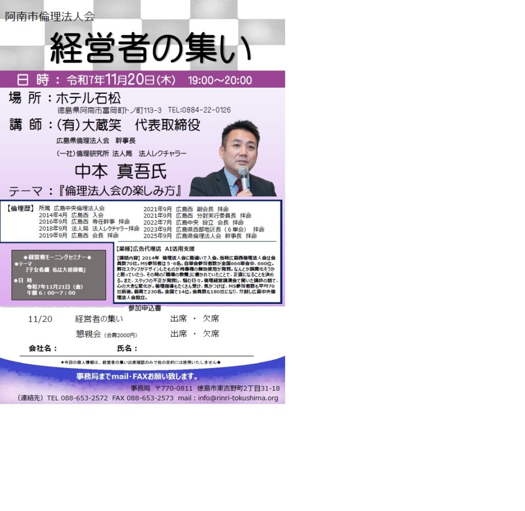 11/20経営者の集い<阿南市倫理法人会>