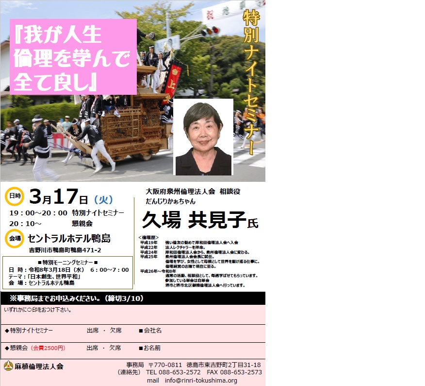 3/17特別ナイトセミナー<麻植倫理法人会>
