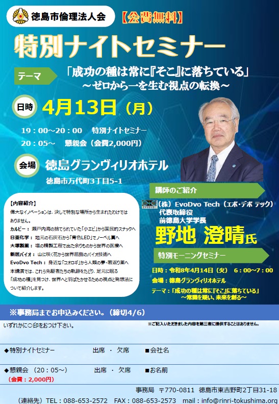 4/13特別ナイトセミナー<徳島市倫理法人会>